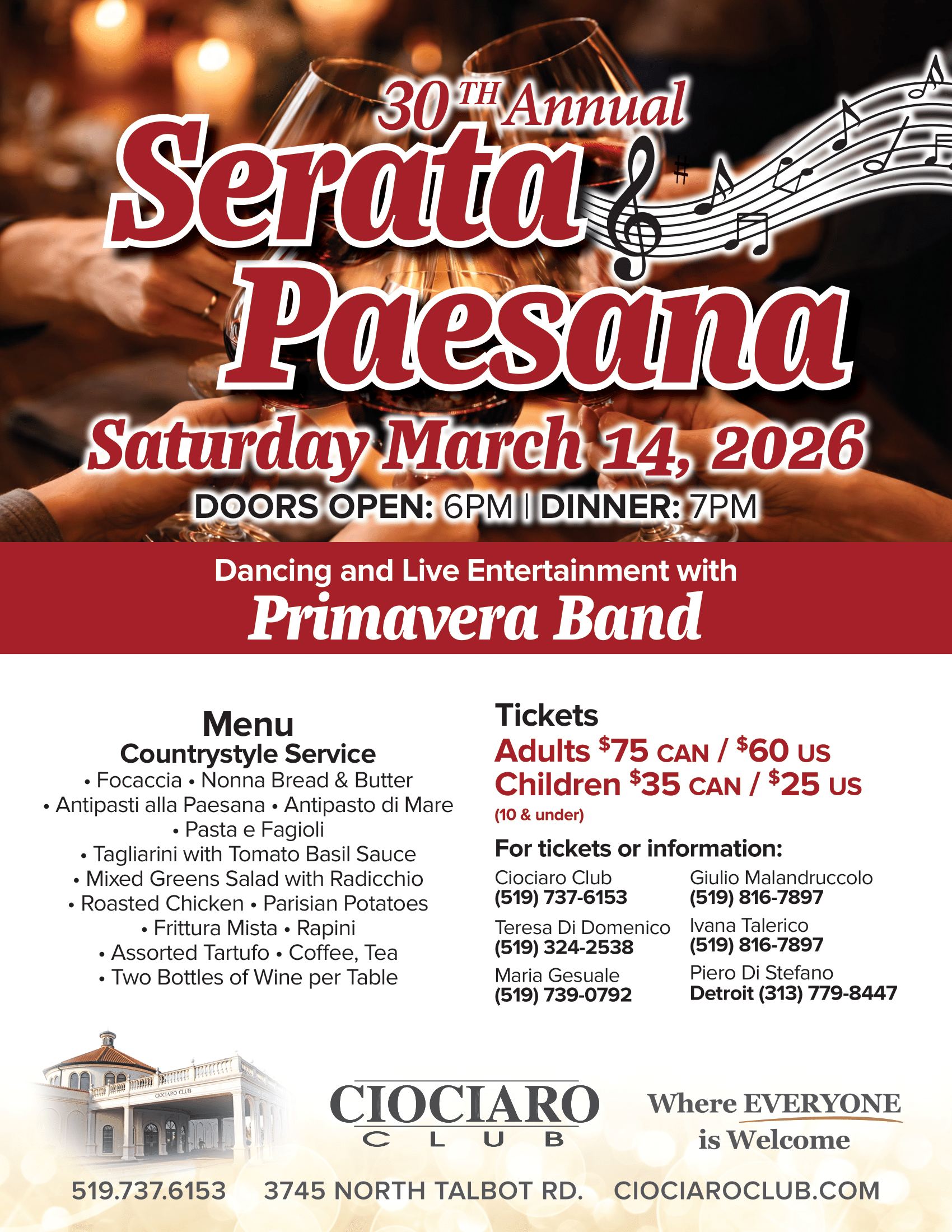 | Location:Ciociaro Club of Windsor 3745 North Talbot Rd. Oldcastle, ON, CA | |